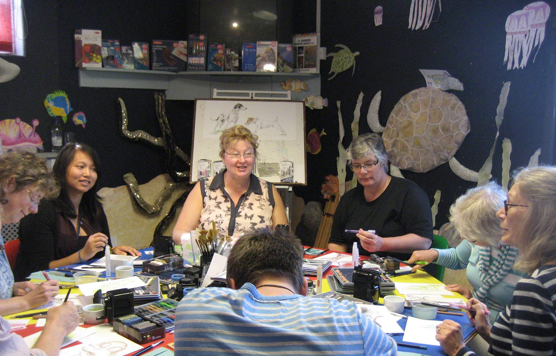 Teaching art workshops and meeting visitors to the 'magical' Pencil Museum, from around the world. Keswick, Lake District, UK. 2014