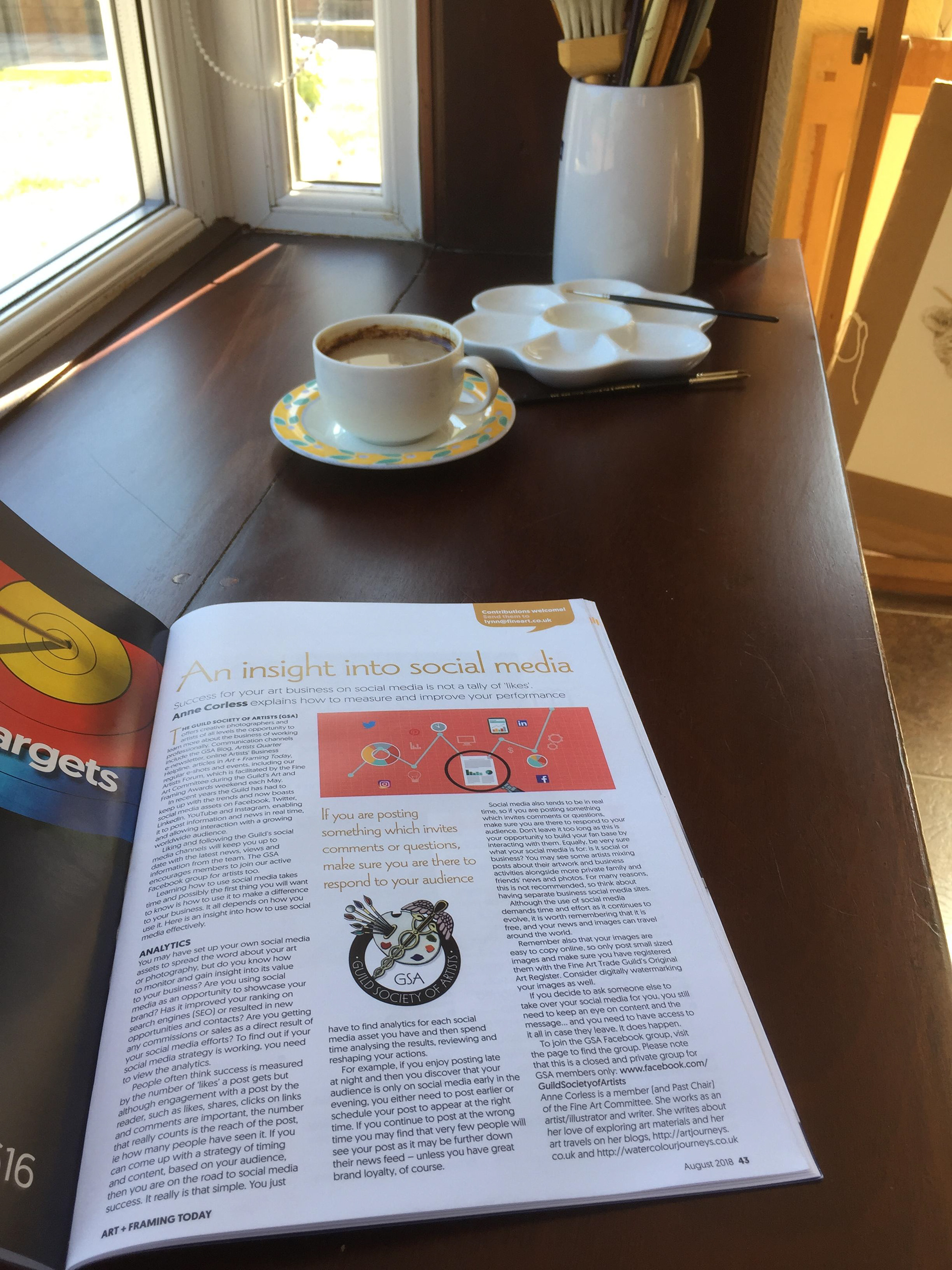 Above: "Lovely to have three features in the October 2018 issue of the Fine Art Trade Guild award winning magazine, Art + Framing Today. As Chair of the Fine Art Committee of the Guild at that time, I was delighted to be asked to write on these topics."